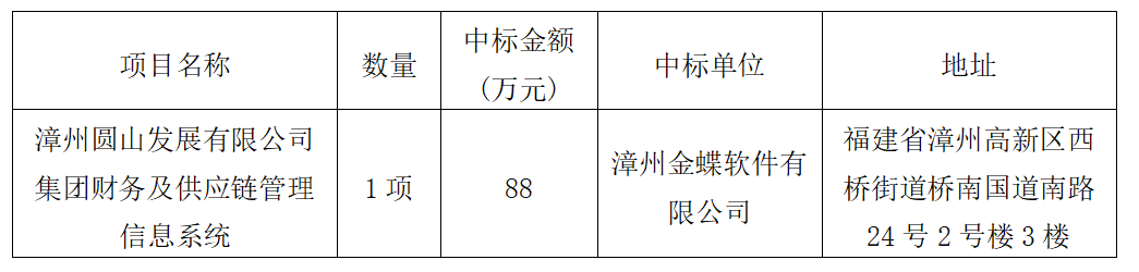 漳州圓山發(fā)展有限公司集團財務及供應鏈管理信息系統(tǒng) 中標結果公告