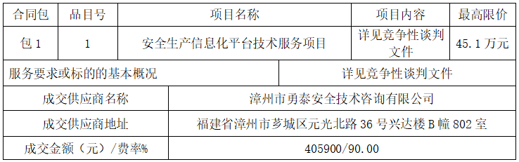 7.采購人和評(píng)審專家的推薦意見:經(jīng)對(duì)談判文件及評(píng)審結(jié)果的認(rèn)真審核,采購人和評(píng)審專家一致推薦漳州市勇泰安全技術(shù)咨詢有限公司為本項(xiàng)目成交供應(yīng)商。