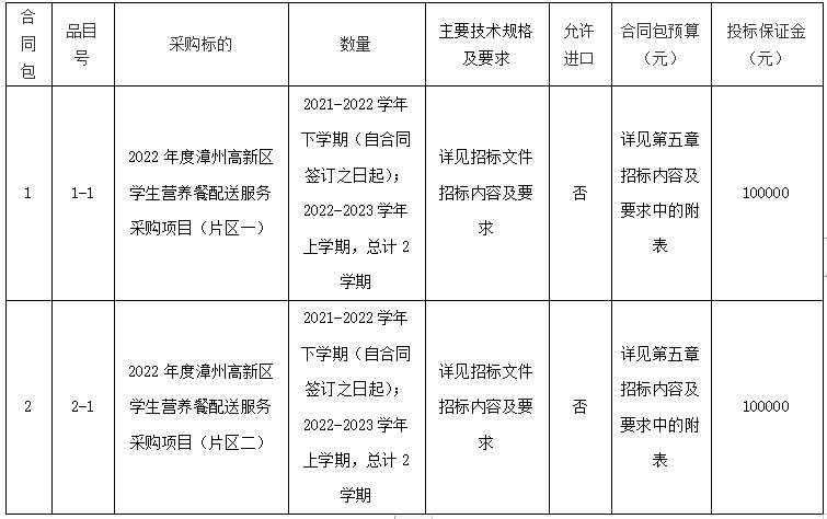 福建瑞晟建設工程造價咨詢有限公司受漳州圓山發(fā)展有限公司委托,對2022年度漳州高新區(qū)學生營養(yǎng)餐配送服務采購項目的下述服務進行國內(nèi)公開招標,現(xiàn)歡迎各供應商前來參加投標。